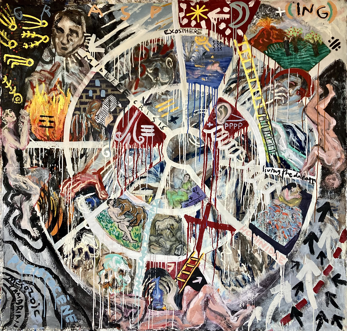 Pour autant, il ne fait aucun doute, pour qui passe un temps suffisant devant ces images, que, si l’expression picturale proposée traverse donc, à n’en pas douter, les champs de la figuration – évocation voire transfiguration, description peut-être et lambeaux de narration – son enjeu le plus médullaire n’y est pas localisable. Les figures, les objets, les profondeurs, les symboles, sont soumis à une logique plus archaïque et souterraine, plus retorse sans doute, quoique plus frontalement splanchnique." Julien Boutonnier, 2020
