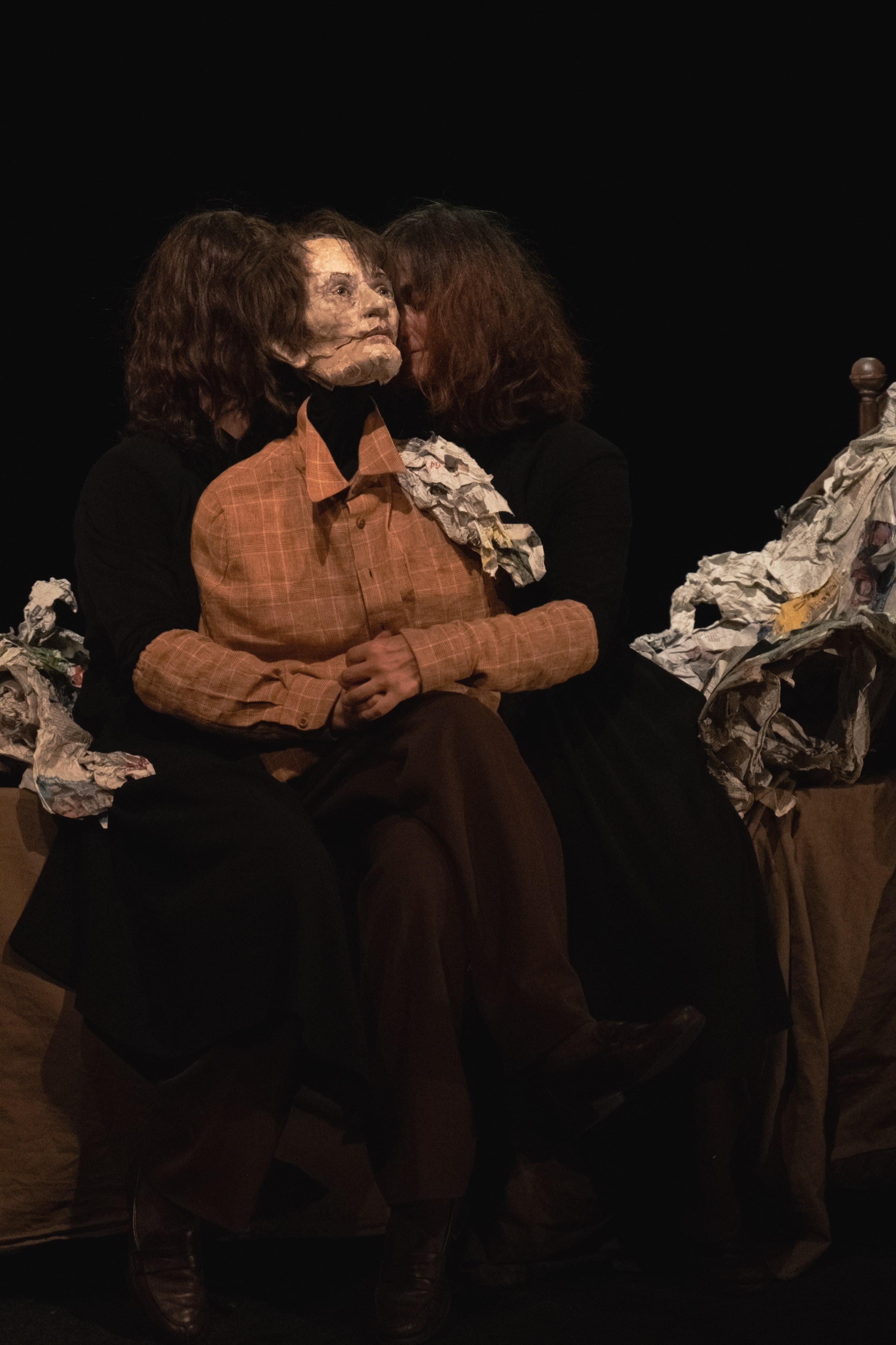De Natacha Belova et Tita Iacobelli | Avec Tita Iacobelli et Marta Pereira (en alternance avec Anne Romain) | Scénographie Camille Burckel | Costumes Jackye Fauconnier | Création lumière Christian Halkin | Création sonore Simon Gonzalez | Regard extérieur Raven Ruell | Contribution artistique Sophie Warmant | Chorégraphie Nicole Mossoux | Marionnettes Loïc Nebreda | Production Javier Chávez | Une production d’Ifo Asbl en coproduction avec le Théâtre National Wallonie-Bruxelles, le Théâtre de Poche, l’Atelier Théâtre Jean Vilar (LLN), la Maison de la Culture de Tournai, le Festival mondial de la Marionnette (Charleville-Mézières), la Fondation Corpartes Santiago et le théâtre de la Cité (Toulouse)