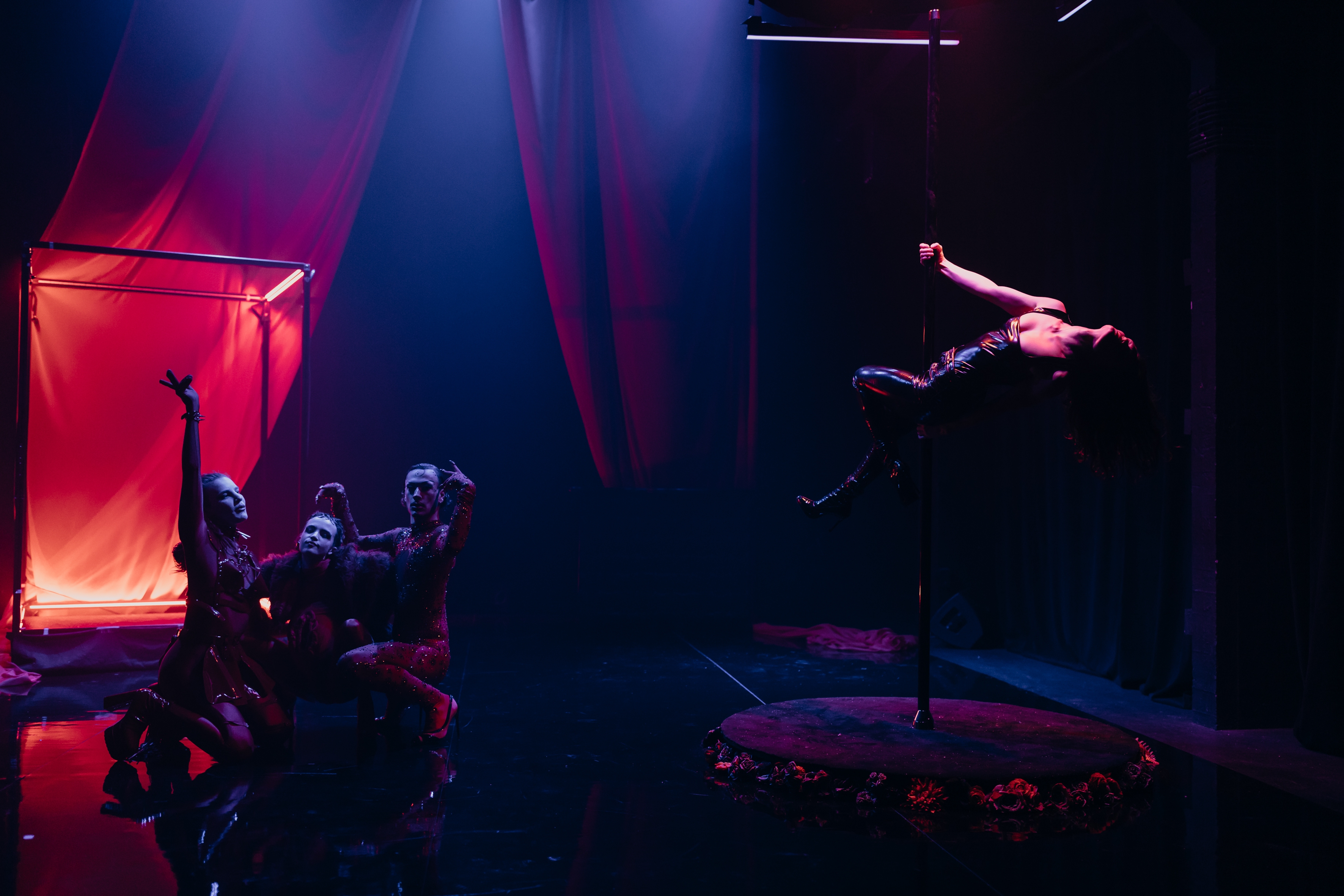 Dans l’atmosphère délirante d’un cabaret burlesque, Complexes est une ode à la liberté de s’affirmer. A la croisée du cirque, de la danse, du chant et du pole dance, le spectacle nous entraine dans un univers psychédélique proche du Pays des Merveilles en version hard.