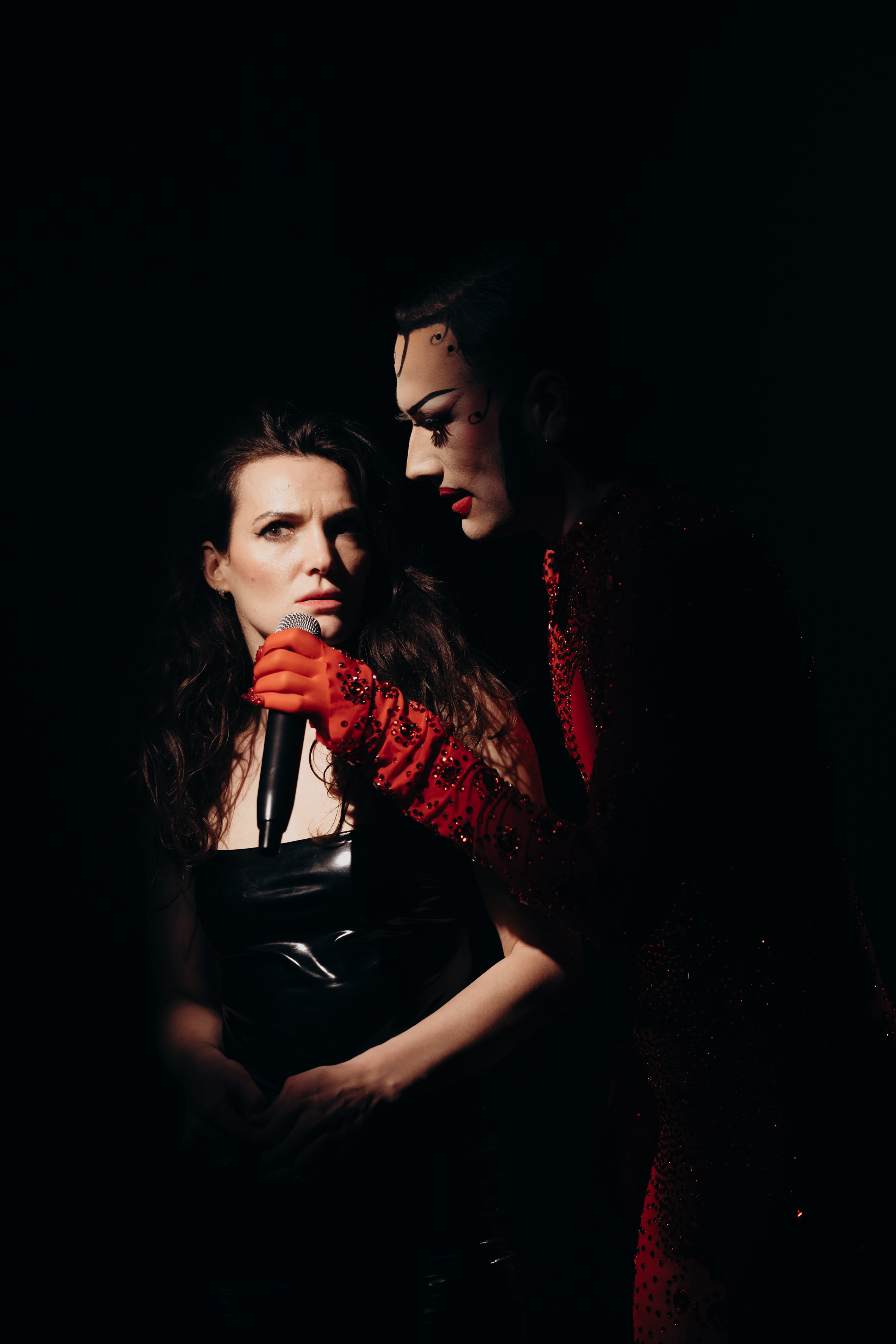 Madame Monsieur qui représente la mémoire des hommes qu’a connu Sandrine. Elle est une drag-queen qui s’amuse tant du machisme palpable de l’homme dominant que du sex-appeal jusqu’au-boutiste de la femme fatale.